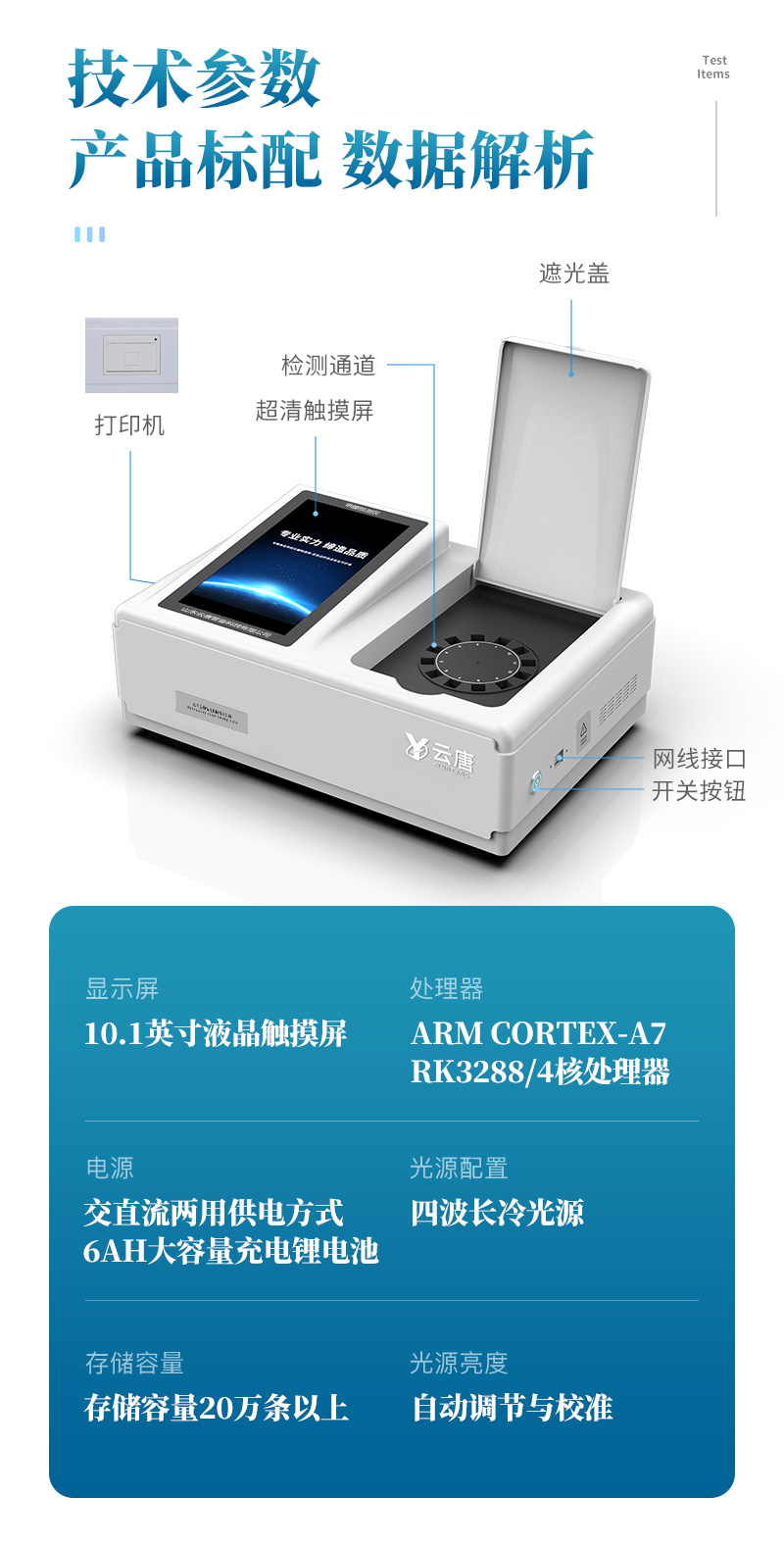 高精度進口四波長冷光源,通道配置 410、520、590、630nm 波長光源,一個光源芯片驅(qū)動一個光源,誤差極小,每臺設(shè)備單獨**校準光源,**比對,同時參照四種不同波段光源全方位覆蓋市面上99%的農(nóng)殘食品項目檢測。